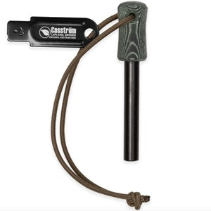 Essential Extras Each ferrocerium rod comes equipped with a shock cord and a Casström-branded steel striker.
