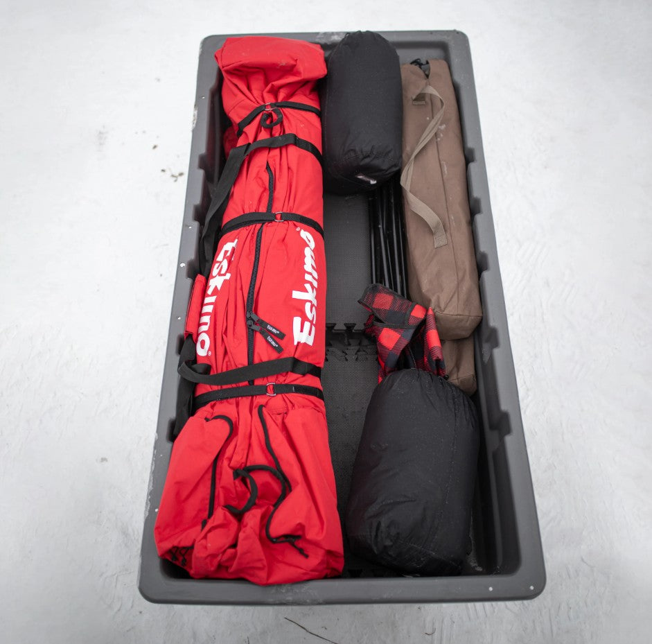 The Outbreak™ 450XDP is our most versatile shelter size, with 75 square feet to accommodate a few buddies fishing after work, a weekend ice camping adventure, and everything in-between. The XDP series greatly reduces pack length with optimized hub placement, so you can enjoy big fishable area without wrestling a carry bag that’s bigger than you are. This shelter conveniently slides into a standard 5.5’ truck bed, fits straight in a tow sled, or sits on an ATV rack. The condensed pack-down length of just 58” makes it easy to transport and manage by yourself.