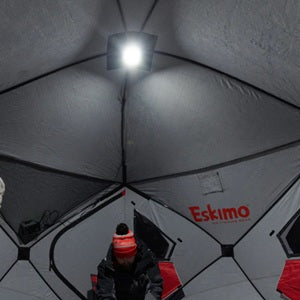 A unique lighting solution for those who like to stay out after dark. The E-Hub™ Shelter Light Kit features a 1400 lumen, cool white (6000K) LED disc light. The kit includes multiple cord options, designed to reach the center roof hub of your portable shelter with power source flexibility, supporting both 12V and Type-A USB connections. The kit can fit nearly any type of shelter, with included wire management straps to run the cords where you want them while keeping things organized. E-Hub accessories are designed with a locking clip connection that easily snaps into place, holding strong and secure even if accidentally bumped. A standard E-Hub™ Base is included for use on hubs or other flat surfaces, utilizing the existing bolts/nuts on the shelter hub so no additional installation hardware is necessary. When the day is done, the base can remain mounted during shelter takedown and storage, ready for your next trip out on the hard water.