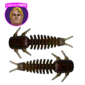 The baby brother of the Indestructo BUG. Its a 1" creature made from your favorite Indestructo PLASTIC. Its elasticity will keep it seated on the hook where it needs to be. The ribs and arms wiggle so enticingly you may not be able to help yourself..... *not for human consumption*
