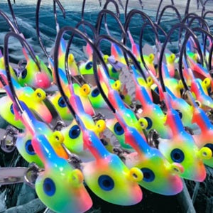 - Triangular shaped flat bottomed Stand up jig keeps the hook off the bottom